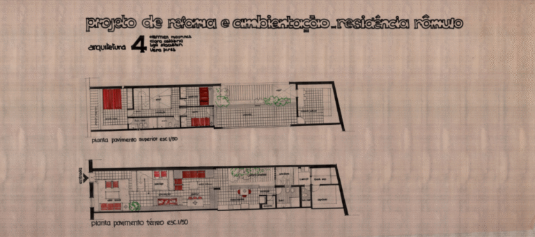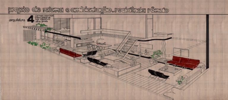 O projeto de ambientação e reforma da residência de Rômulo Lopes, encontra-se no acervo com uma perspectiva e as plantas baixas dos pavimentos.